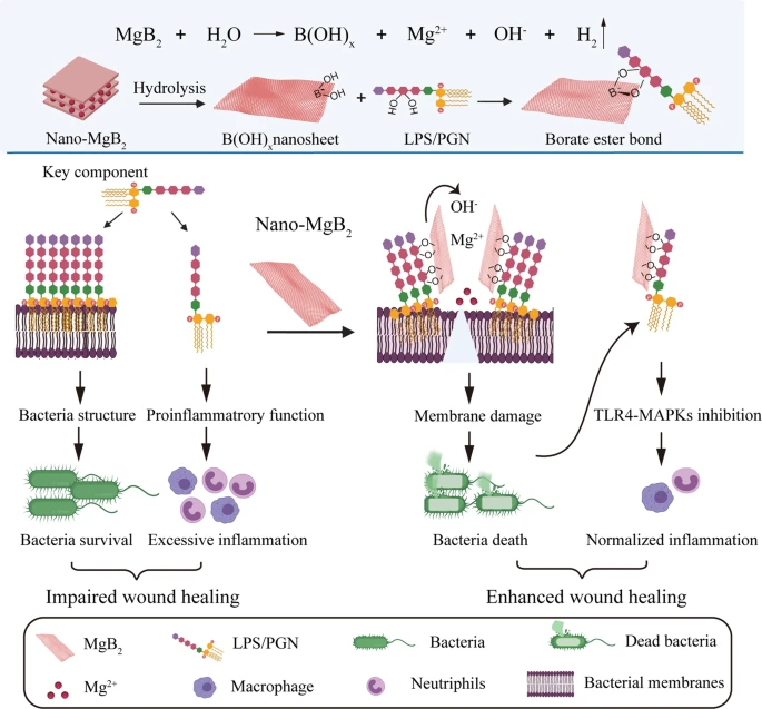 Meng, Y., Chen, L., Chen, Y., Shi, J., Zhang, Z., Wang, Y., Wu, F., Jiang, X., Yang, W., Zhang, L., Wang, C., Meng, X., Wu, Y., & Bu, W. (2022, November 29). Reactive metal boride nanoparticles trap lipopolysaccharide and peptidoglycan for bacteria-infected wound healing. Nature News. Retrieved February 9, 2023, from https://www.nature.com/articles/s41467-022-35050-6
